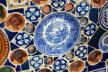 La poterie Talavera est une tradition de poterie mexicaine et espagnole qui tire son nom de la poterie espagnole de Talavera de la Reina (en), de Talavera de la Reina, en Espagne. La poterie mexicaine est une faience de type majolique ou de faïence émaillée à l'étain, avec une glaçure à base blanche typique de ce style[1]. Elle provient de la ville de San Pablo del Monte, dans l'état de Tlaxcala, et des villes de Puebla, Atlixco (en), Cholula et Tecali, toutes dans l'état de Puebla, en raison de la qualité de l'argile naturelle qui s'y trouve et de la tradition de production qui remonte au XVIe siècle[2]. Une grande partie de cette poterie est décorée uniquement en bleu, mais des couleurs comme le jaune, le noir, le vert, l'orange et le mauve sont également utilisées[3]. La poterie majolique est introduite au Mexique par les Espagnols au premier siècle de la période coloniale. La production de cette céramique se développe fortement à Puebla en raison de la disponibilité d'argiles fines et de la demande de carreaux des églises et monastères nouvellement établis dans la région. L'industrie se développe suffisamment développée pour qu'au milieu du XVIIe siècle, des normes et des guildes soient établies, ce qui permet d'améliorer encore la qualité, conduisant Puebla à ce qu'on appelle l'« âge d'or » de la poterie Talavera (de 1650 à 1750)[2]. Formellement, la tradition qui s'y développe est appelée « Talavera Poblana » pour la distinguer de la poterie Talavera d'Espagne qui porte le même nom. C'est un mélange de techniques céramiques italiennes, espagnoles et indigènes[2].