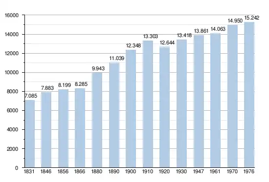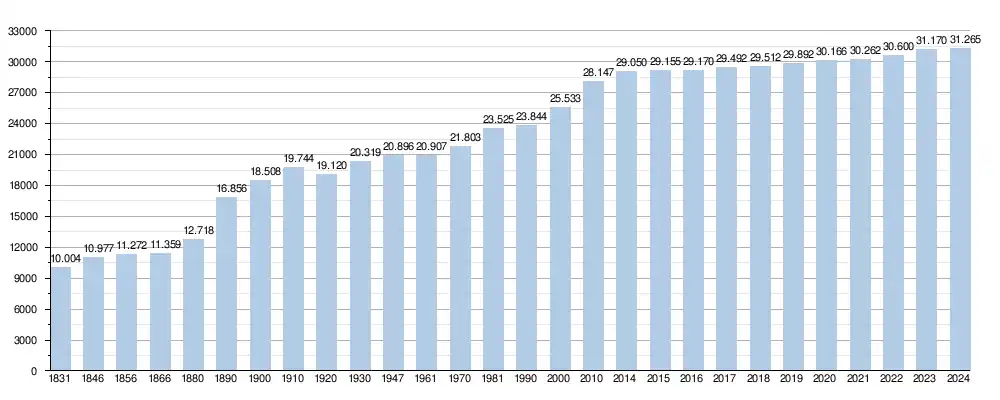 - Source : DGS - Remarque: 1831 jusqu'à 1981=recensement; depuis 1990=nombre d'habitants chaque 1er janvier[17]