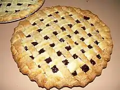 La tarte aux myrtilles ou tarte aux bleuets est une tarte sucrée / pâtisserie garnie de myrtilles ou de bleuets.