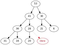 - C'est un arbre binaire complet : tous les niveaux sauf le dernier doivent être totalement remplis et si le dernier ne l'est pas totalement, alors il doit être rempli de gauche à droite.