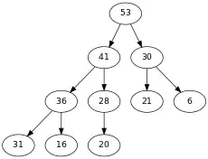 2. On parcourt les sommets niveau par niveau en partant de l'avant dernier niveau (profondeur ) et dans chaque niveau on parcourt les sommets de la droite vers la gauche. Lors de notre parcours on effectue un percolate-down à partir de chaque sommet.