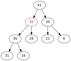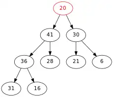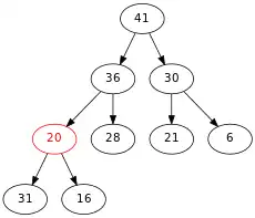 On compare 20 et son fils maximum, qui est 41. Comme 41 > 20, on échange 20 et 41.
