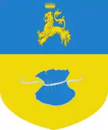 Les armes des Tasca sont coupé d'azur à un lion courant et couronné d'or et d'or à une bourse (en italien tasca) d'azur.
