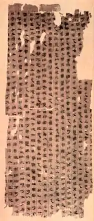 Avant la période Han, les fouilles archéologiques permettent de déterminer que le principal véhicule d'écriture sont les carapaces et les os, ainsi que les bronzes[5]. Au début de la période Han, le bambou est principalement utilisé pour conserver les écrits, tout comme les tablettes en argile et les rouleaux de soie. Tous ces supports sont alors sécurisés et fermés par un sceau[6],[7],[8]. Sur les lattes de bambous, les sinogrammes sont disposés en colonnes[9].