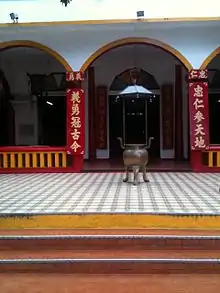 Le temple de Guan di de Saint-Pierre se caractérise par le fait qu'il possède quatre autels : outre celui dédié à Guan di, trois autels sont dédiés à trois autres divinités et un au culte des ancêtres[13].