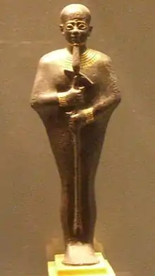 - Ce groupe statuaire en granite gris est actuellement exposé à la Ny Carlsberg Glyptotek de Copenhague ; voir plus bas § Le sanctuaire de Ptah