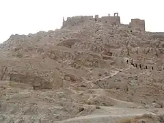 La colline qui s'élève au-dessus de 210 mètres environ de la plaine environnante, a été précédemment appelée Maras ou Marabin, du nom d'un village situé à proximité. C'est par ce dernier nom que le site est nommé des historiens arabes.