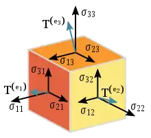 Dans les notations, représente la composante du tenseur T d'indices . Quand on veut désigner un tenseur dans sa globalité tout en indiquant l'ordre de ce tenseur, on peut souligner le nom du tenseur d'autant de traits que l'ordre du tenseur. Ainsi, avec cette notation, un vecteur sera noté plutôt que , et un tenseur de contraintes mécaniques (d'ordre 2) sera noté . Ceci est particulièrement utile quand on manipule des tenseurs d'ordres différents, ce qui est le cas en déformation élastique, pour laquelle on caractérise le comportement de déformation des matériaux par un tenseur d'ordre 4, et les déformations et contraintes par des tenseurs d'ordre 2. Dans le cas le plus simple de comportement élastique linéaire, .