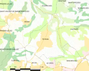 - « Orthodromie entre Teyran et Prades-le-Lez », sur fr.distance.to (consulté le ).
