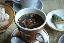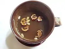 La tisane est une décoction de racine sèche qui se prend sucrée[117] ou une infusion de poudre de racine (galbun-cha)[118], elle est utilisée pour traiter diarrhées, coliques ou dysenteries. Le chikcha 칡차 (chilgcha) peut aussi se faire avec une infusion de fleur.