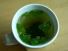 Mentha canadensis 박하차 (bagha cha), chinois 薄荷茶 (bòhé chá). Cette tisane de menthe se prépare en Corée avec les feuilles de menthe sauvage. Les menthes sont des plantes médicinales associées aux boissons, leur huile essentielle est abondante en composés aromatiques: limonène, menthone, menthol [33] aux propriétés multiples qui en font un des additifs aromatiques les plus utilisés avec la vanille et les agrumes[34]. Cette tisane est spécialement riche en polyphénols[35].