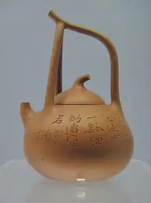 La théière dérive probablement des bouilloires en céramique et des pots à vin en bronze ou en d'autres métaux qui furent une caractéristique de la vie culturelle chinoise pendant des milliers d'années. Le premier exemplaire de théière qui ait survécu semble être celui du Flagstaff House Museum of Teaware (en), datant de 1513 et attribué à Gongchun[2].