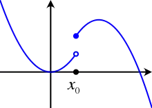 Illustration d'une fonction qui n'est pas semi-continue inférieure. D'après le théorème de Fenchel-Moreau, cette fonction n'est pas égale à sa biconjuguée.