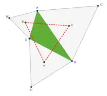 Lemme 2 — La différence entre l'aire du triangle final « extérieur » LMN et l'aire du triangle final « intérieur » L1M1N1 est égale à l'aire du triangle de départ ABC.