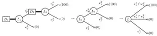 Cette propriété de mixage peut être vue comme une composition de loterie[30]. La loterie correspond à la loterie à deux étapes qui, dans un premier temps, offre les loteries et avec les probabilités et respectivement et, à la seconde étape, offre la conséquence . Cet axiome considère comme équivalent la loterie composée (à plusieurs étapes) et sa forme réduite (à une étape).