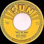Cette reprise adaptée d’Elvis Presley (mélange de blues-gospel-country local, considérée comme un des titres fondateurs du rock 'n' roll-rockabilly) est enregistrée le à Memphis[6]. Le chanteur amateur est retourné au studio de Sam Phillips pour interpréter et tenter d'enregistrer quelques premiers titres, dont la ballade country I Love You Because. À la fin de la séance, il improvise That’s All Right et Blue Moon of Kentucky avec les deux musiciens de studio qui l’accompagnent : le guitariste Scotty Moore et le contrebassiste Bill Black. Phillips enregistre les deux titres presque par hasard, et découvre alors avec Elvis un des premiers interprètes blancs capables de rivaliser dans leurs registres avec les meilleurs interprètes de musique noire américaine[7] de l'époque, du Sud des États-Unis.