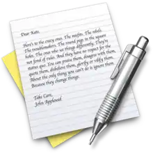 Le début du texte lu dans le spot de la campagne est reproduit dans l'icône de l'application TextEdit de Mac OS X. Note : L'icône n'est aujourd'hui plus la même dans la dernière version de macOS, macOS Ventura.
