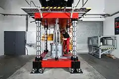 Le rôle de la presse dynamique est de créer un effort de traction ou de compression à vitesse élevée. Thiot Ingénierie possède une presse dynamique particulière de par sa vitesse de chargement[16]. L'effort peut passer de 0 à 200 tonnes en 3 millisecondes[2]. Ces essais permettent d'étudier la réponse des matériaux et structures face à des chargements rapides comme les crash ou les explosions.