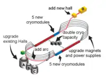Le Jefferson lab étudie la possibilité d'effectuer l'augmentation de l'énergie de l'accélérateur CEBAF jusqu'à 12 GeV, et la construction d'un quatrième hall expérimental, le Hall D, entre 2010 et 2014.