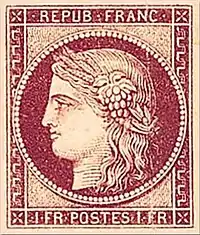 Le , une circulaire de l'Administration centrale des Postes annonce le rappel des timbres d'un franc de couleur vermillon, dénommée « couleur rouge claire ». Ne doivent rester dans les bureaux que des exemplaires carmin (« couleur rouge foncée »). Le but est d'éviter une confusion avec la couleur des 40 centimes dont l'émission est prévue pour début 1850.