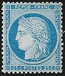 Le 25 centimes bleu est le premier timbre de la seconde série des Cérès de la IIIe République, il est pourtant souvent placé parmi les derniers timbres de ce type dans certains catalogues.