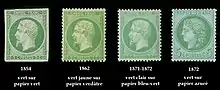 Certains timbres à l'effigie de Napoléon III ont connu une histoire prolongée après la chute de l'Empire, en 1871-1872, en raison du changement de tarif du : notamment le 5 centimes vert type Napoleon III dentelé de 1863.