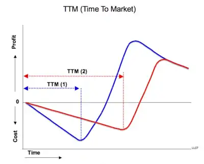 - (en) Cet article est partiellement ou en totalité issu de l’article de Wikipédia en anglais intitulé « Time to market » (voir la liste des auteurs).