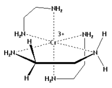 La diastéréotopicité n'est pas limitée aux molécules organiques, ni aux groupements attachés au carbone, ni aux molécules aux centres chiraux tétrahédriques (hybride sp3): par exemple, les paires d'hydrogènes de n'importe lequel des groupements CH2 ou NH2 dans l'ion tris(éthylènediamine)chrome(III) (Cr(en)33+), où le centre métallique est chiral, sont diastéréotopes (Figure 2).