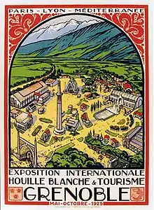La tour Perret a été construite par l'architecte et entrepreneur Auguste Perret en 1924 en prévision de l'Exposition internationale de la houille blanche de 1925 sur la production, le transport et la distribution de l'énergie électrique, et le tourisme, seconde source d'activité économique dans les Alpes au début du siècle[10].