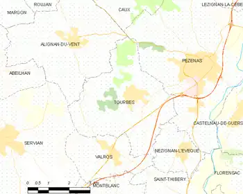 - « Station Météo-France « Pezenas-Tourbes » (commune de Tourbes) - fiche de métadonnées. », sur donneespubliques.meteofrance.fr (consulté le ).