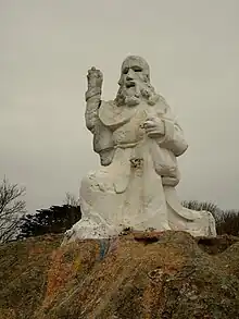 - 1869 : la statue du Bon-Sauveur est érigée à la demande de l'abbé Bouget au sommet d'un amas rocheux de Coz Pors[38]. Elle est bénie le . Elle prendra par la suite - à tort - le nom de statue du Père Éternel, son nom actuel.