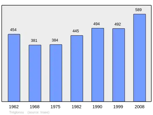 Attesté sous la forme de Treffgloeznou en 1465, de Tregoeznou en 1516, le Treffgloznou du XVIIe siècle[23] est aujourd'hui orthographié en breton Treglonoù. C'est une trève de Plouguin dédiée à un supposé "saint Clotnou", inconnu par ailleurs, dans le nom duquel se reconnaissent les mots celtiques clot (gloire)[24], et gnou, qui signifie connu, notoire[25], avec une idée d'apparition[25], de révélation.