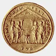 Deux multiples de la Tétrarchie au module de 10 aurei, connu comme des unicum et provenant du trésor, sont la propriété de l'American Numismatic Society[4].