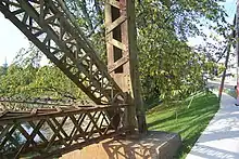 Le lit de la rivière étant particulièrement meuble, il a fallu recourir à la coûteuse et difficile technique du fonçage par caissons pressurisés pour établir des fondations solides sous les chevalets principaux.