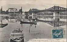 - Un court tronçon de 1,713 km à voie métrique, de la ligne 7 (Chantepoulet - Ferney), de la Compagnie genevoise des tramways électriques, entre Ferney-Voltaire et la frontière Suisse. Cette ligne, à traction électrique, concédée au département par décret du , et rétrocédée à MM. David Annevelle et Cie[38], est ouverte le et fermée le .