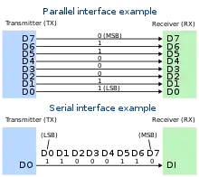 D'autre part, une liaison série requiert un nombre de voies de transmission plus faible, et donc un gain de broches particulièrement intéressant pour les micro-puces puisqu'il entraine une diminution de la taille et donc du prix de celles-ci[réf. nécessaire].