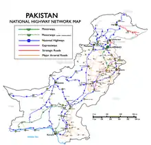 La première autoroute construite fut terminée en 1997, elle relie Lahore, avec Rawalpindi et Islamabad.