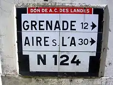 | Route nationale 649 | Sabres | Mont-de-Marsan | Grenade-sur-l'Adour | Renommée RN 134 jusqu'à Mont-de-Marsan et RN 124 au-delà en 1972, puis déclassée en 2006, respectivement en RD 834 et RD 824. |