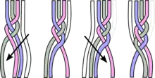 - Tresse en queue de poisson. Elle était appelée « tresse grecque » au XIXe siècle[3].