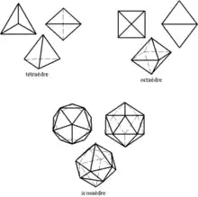Dans l'espace, trois points sont toujours coplanaires et ne suffisent donc pas pour définir un élément de volume. Mais quatre points non coplanaires forment un tétraèdre. Plus généralement, un simplexe est une figure géométrique convexe engendré par n points dans un espace à au moins n−1 dimensions.