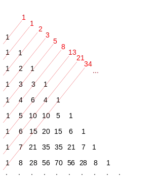Les nombres situés sur la troisième diagonale descendante correspondent aux nombres triangulaires, ceux de la quatrième diagonale aux nombres tétraédriques, ceux de la cinquième diagonale aux nombres pentatopiques et ceux de la n-ième diagonale aux nombres n-topiques.