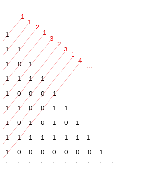 - Exemple : sur la diagonale ascendante de rang 5, on lit 1 – 3 – 1 et