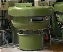 • bols vibrants (aussi appelés vibrateurs circulaires) : pour les pièces de dimensions modestes (< 100 mm) les équipements les plus courants utilisent un mouvement vibratoire imposé à une cuve torique (dont l‘axe de révolution est vertical), ce qui engendre un déplacement des pièces et des médias à la fois autour de l'axe de la cuve, et circulairement dans le profil de la cuve. Ces cuves sont souvent munies d'un couvercle pour éviter l'évaporation de l'eau et limiter les éclaboussures ;