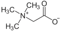 La triméthylglycine est un acide aminé N-triméthylé. Cet ammonium quaternaire existe sous la forme de zwitterion à pH neutre.