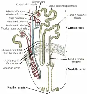 Les tubes collecteurs sont localisés dans les pyramides de Ferrein (1693-1769). Chacun d'entre eux reçoit les tubes contournés distaux de 11 néphrons en moyenne. Ils descendent de façon rectiligne dans la médullaire rénale, augmentant progressivement de diamètre. Au niveau de la médullaire interne, ils fusionnent par groupes de huit pour former un canal papillaire.