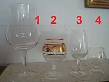 - un pied court qui se développe en forme de ballon puis qui se referme légèrement pour conserver tous les arômes du liquide qu’il contient ; ce qui en fait le verre idéal pour les dégustations.