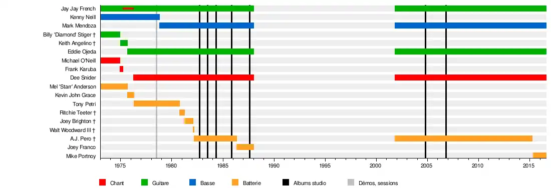 - Jay Jay French – guitare solo, guitare rythmique, chœurs (1972–1987, 1988, 1997, 2001, 2002, 2003–2016)