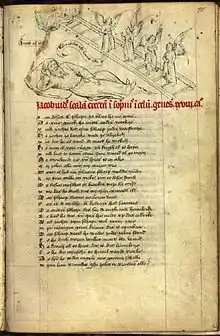 - L'histoire du prophète hébreu Jonas, dans le livre de l'Ancien Testament qui porte son nom. L'interprétation allégorique médiévale de cette histoire voit en elle la préfiguration la mise au tombeau et la résurrection du Christ, l'estomac de la baleine étant le tombeau[5]. De fait, Jonas nommait le ventre de la Baleine "Shéol", la terre des morts. Ainsi, chaque fois que l'on trouve une allusion à Jonas dans l'art ou la littérature médiévale, c'est généralement une allégorie de la mise au tombeau puis de la résurrection du Christ.