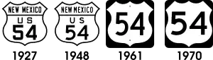 Les panneaux originaux, à la silhouette découpée, avaient un espace réservé à l'indication de l'État (le nom complet ou son abréviation). Datant de 1926, ils furent utilisés jusqu'à la fin dans années 1940.