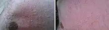 Cliniquement, elle se caractérise par l’apparition rapide, dans les 5 minutes suivant l’exposition au froid[2], de maculo-papules prurigineuses sur les régions exposées. Des réactions généralisées peuvent survenir, des réactions anaphylactoïdes[7] peuvent entrainer un risque vital.